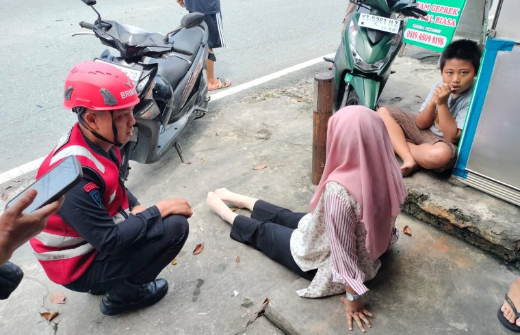 “Tadi, seorang ibu jatuh saat mengendarai sepeda motor dan disenggol oleh motor dari belakang, lalu motornya kabur. Mendapat laporan dari masyarakat tim Respon Bencana Batalyon A Pelopor langsung merapat ke TKP,” kata Kompol Iwan Pamuji dalam keterangannya.