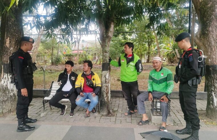 Patroli yang dilaksanakan personel Batalyon A Pelopor ini sedang berbincang santai sembari memberikan himbauan kamtibmas kepada para pengendara ojek online, Selasa, (29/4/2025).