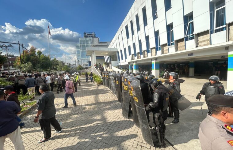 Samarinda – Sebanyak satu Satuan Setingkat Kompi (SSK) personel Batalyon B Pelopor Satuan Brimob Polda Kalimantan Timur diterjunkan untuk mengamankan jalannya aksi unjuk rasa yang dilakukan oleh kelompok Maritim Muda Daerah Kaltim. Aksi demonstrasi yang berlangsung di Kantor PT. Pelindo Regional IV Samarinda ini dipimpin langsung oleh Iptu Umaryadi dan terpantau berjalan kondusif di bawah pengawasan ketat aparat.