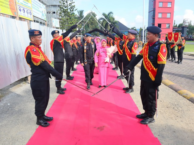 Usai upacara pokok, acara dilanjutkan dengan tradisi Pedang Pora yang menambah suasana haru. Tradisi ini adalah simbol kehormatan dan pengakuan dari rekan-rekan sejawat terhadap perwira yang memasuki masa pensiun. Iptu Siswoyo bersama istri berjalan di bawah jajaran pedang yang dipegang oleh para perwira, melambangkan langkah terakhirnya dalam mengabdi di institusi dan perpisahan yang penuh makna.