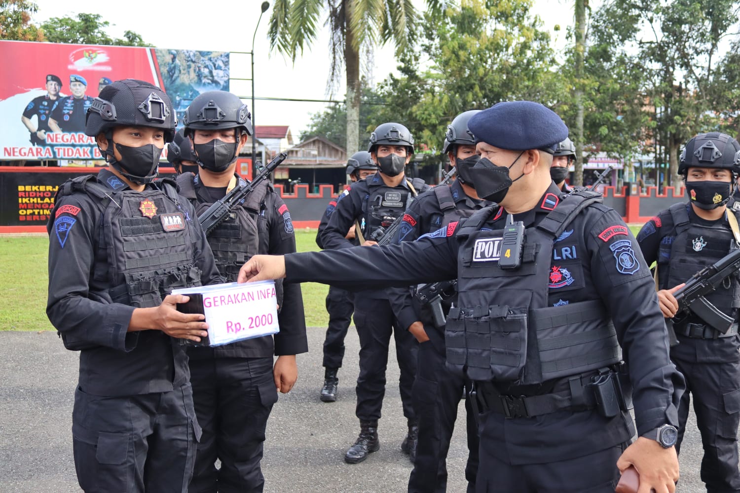 SAMARINDA - Personel Batalyon B Pelopor dan Subden Komposit Gegana Korps Brimob Polda Kaltim laksanakan kegiatan mingguan gerakan infaq dua ribu yaitu kegiatan sedekah dengan menyisihkan sedikit rejeki. Kegiatan tersebut dilaksanakan setelah apel satuan yang…